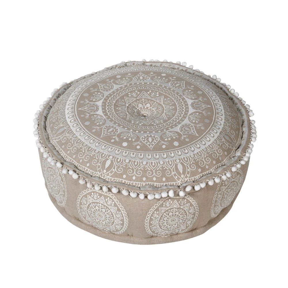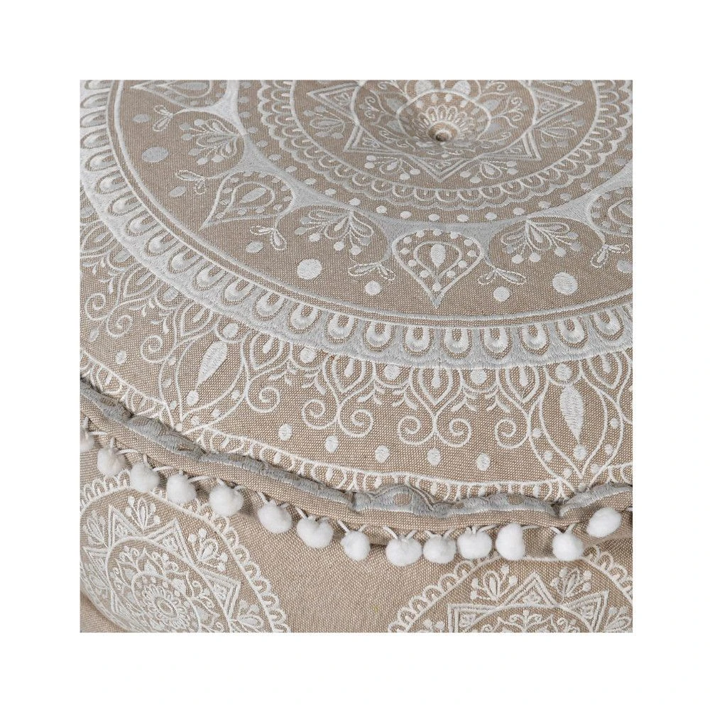 This lovely natural pouffe makes the perfect statement piece for your contemporary style home. The Calliope Pom Pom Pouffe features a beige and white boho style design with an outer edge of small pom poms for extra character.