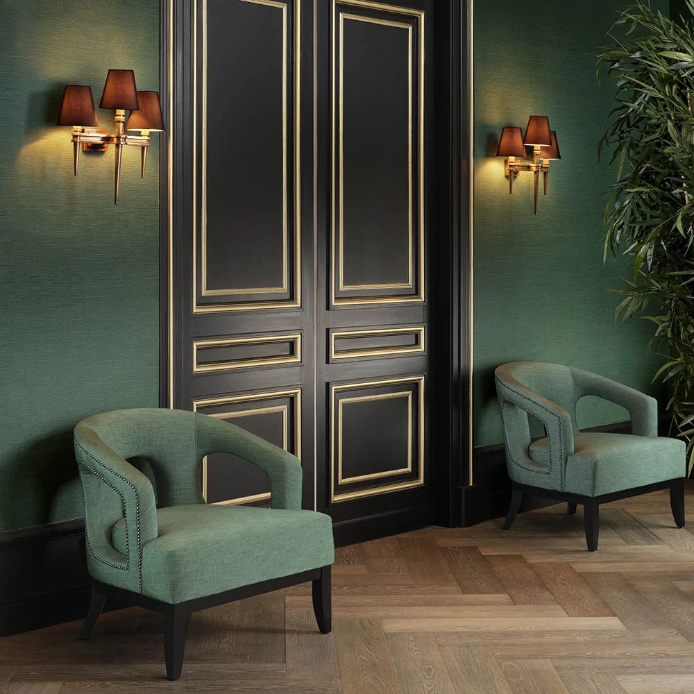 The Adam Occasional Chair from luxury Dutch brand, Eichholtz is a beautifully modern piece with heaps of character. Swooping curves create loops and arches which gives it a distinct silhouette. And the Adam is finished off perfectly with antique brass studding.