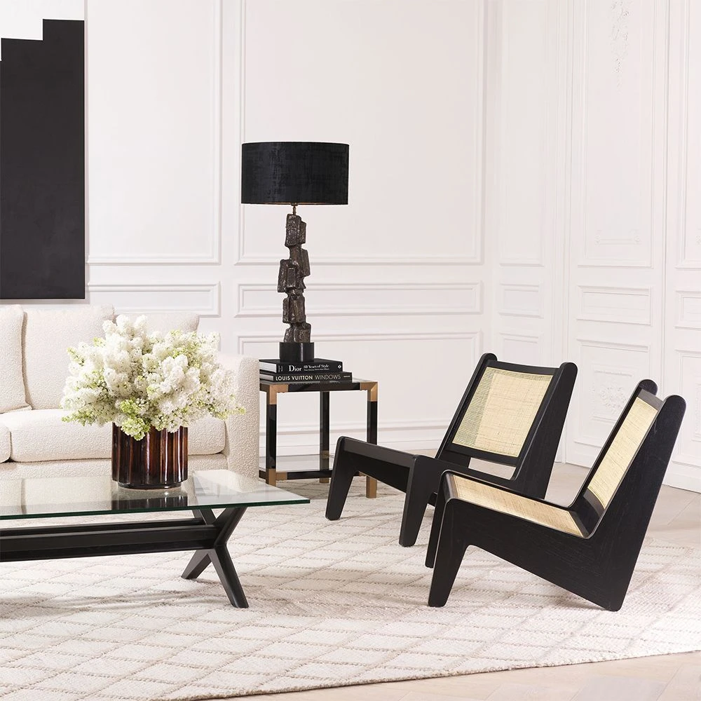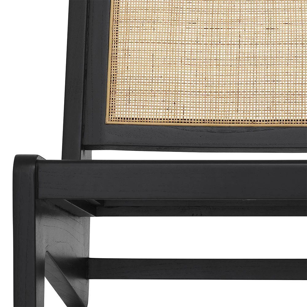 This vintage-style chair is handcrafted beautifully with rattan cane webbing on the seat base, complemented by the black wooden legs. With its laid-back seat structure, this chair is great to give both an inviting and stylish feel to your home, whilst giving you added comfort. This piece is also available in Brown.