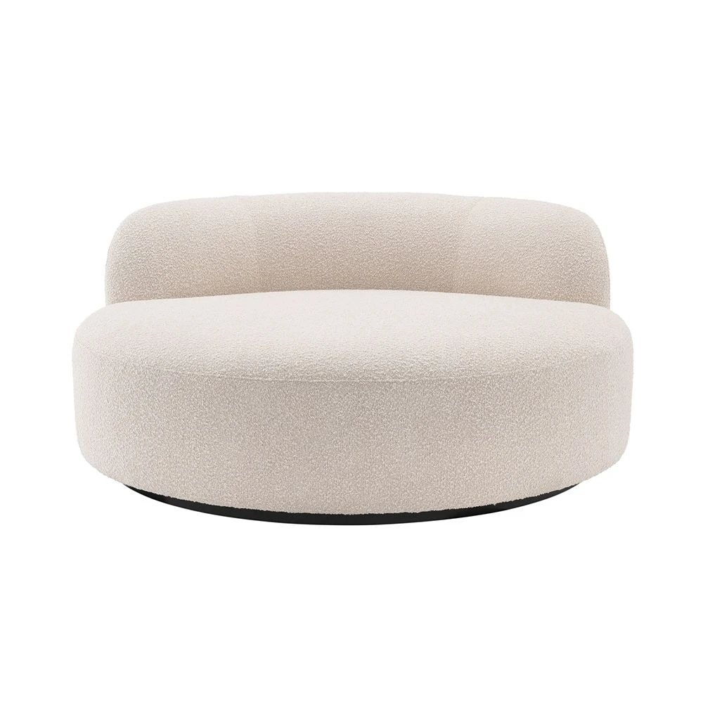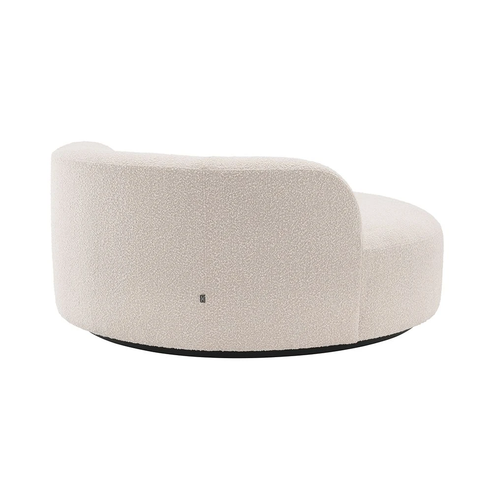 Take your lounging experience to the next level with the fabulous Bjorn Round Sofa. Exquisitely upholstered in a dreamy boucle cream upholstery and finished with a sleek black base.