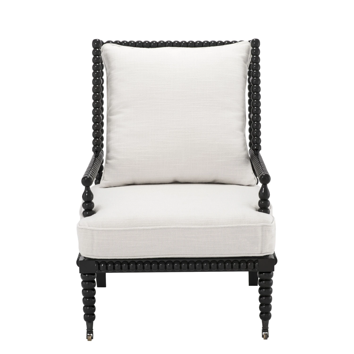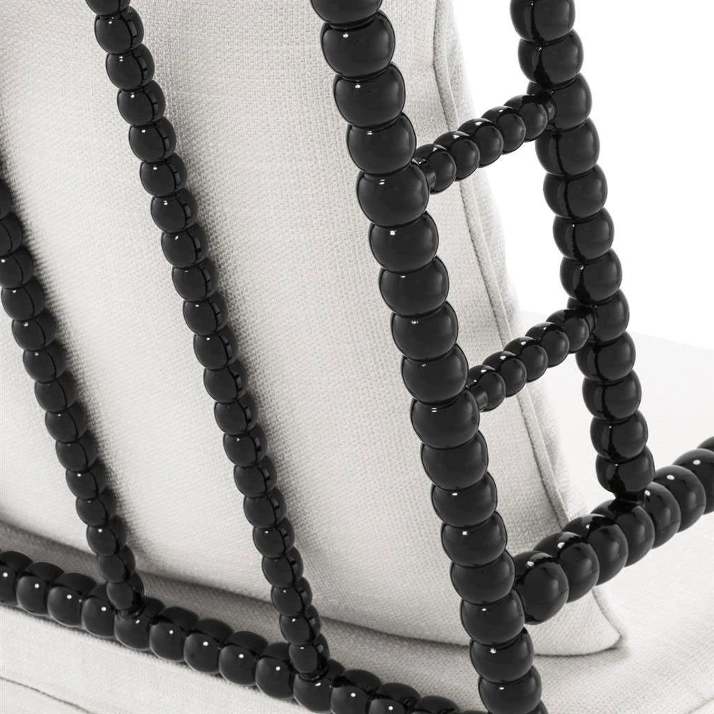 Sit back sumptuously and in sheer style with this wonderful armchair from Eichholtz. The chair has a unique beaded structure and is finished in a striking piano black. The chair has a deep cushioned seat and a large scatter cushion for comfortable back support, the ultimate chill spot! Whether your enjoying a cuppa or admiring the view from your dining area this chair is just what you need.