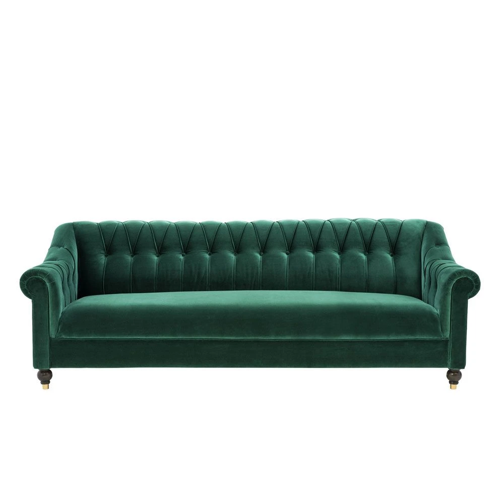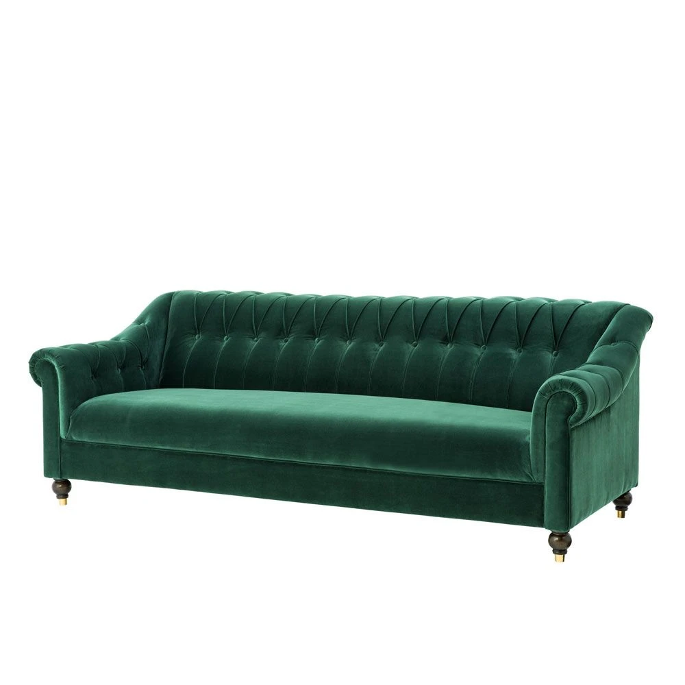 Introducing the stunning Brian Sofa by Eichholtz! This lovely sofa comes in sweet, green velvet upholstery and buttoning. The rich shade of green makes this sofa the perfect statement piece for a luxurious space.