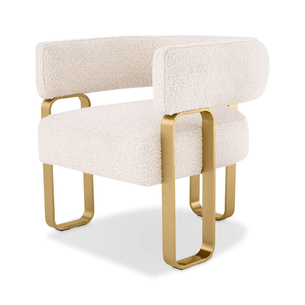 This Capricorn Chair is a personal favourite. With its rounded industrial design softened by the lovely and luxurious boucle cream finish, this chair is the epitome of sophistication and modern class. Boasting classy brass and cream, this light design is perfect for any modern interior to add a trendy touch.