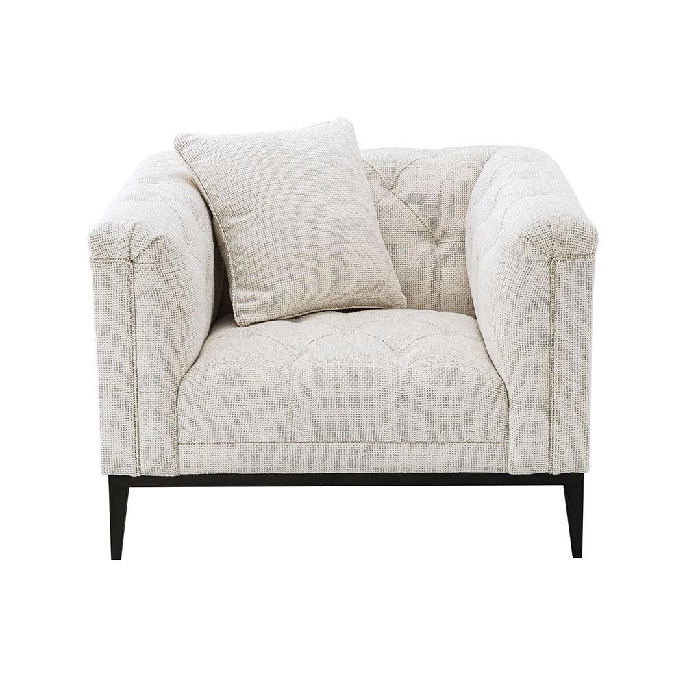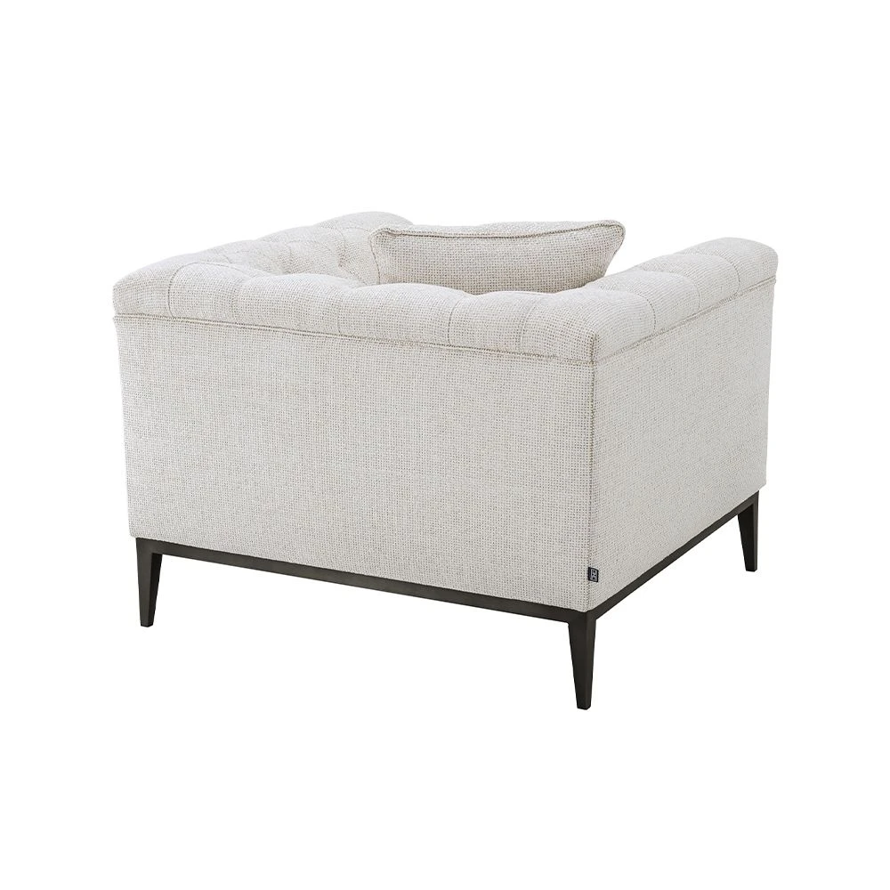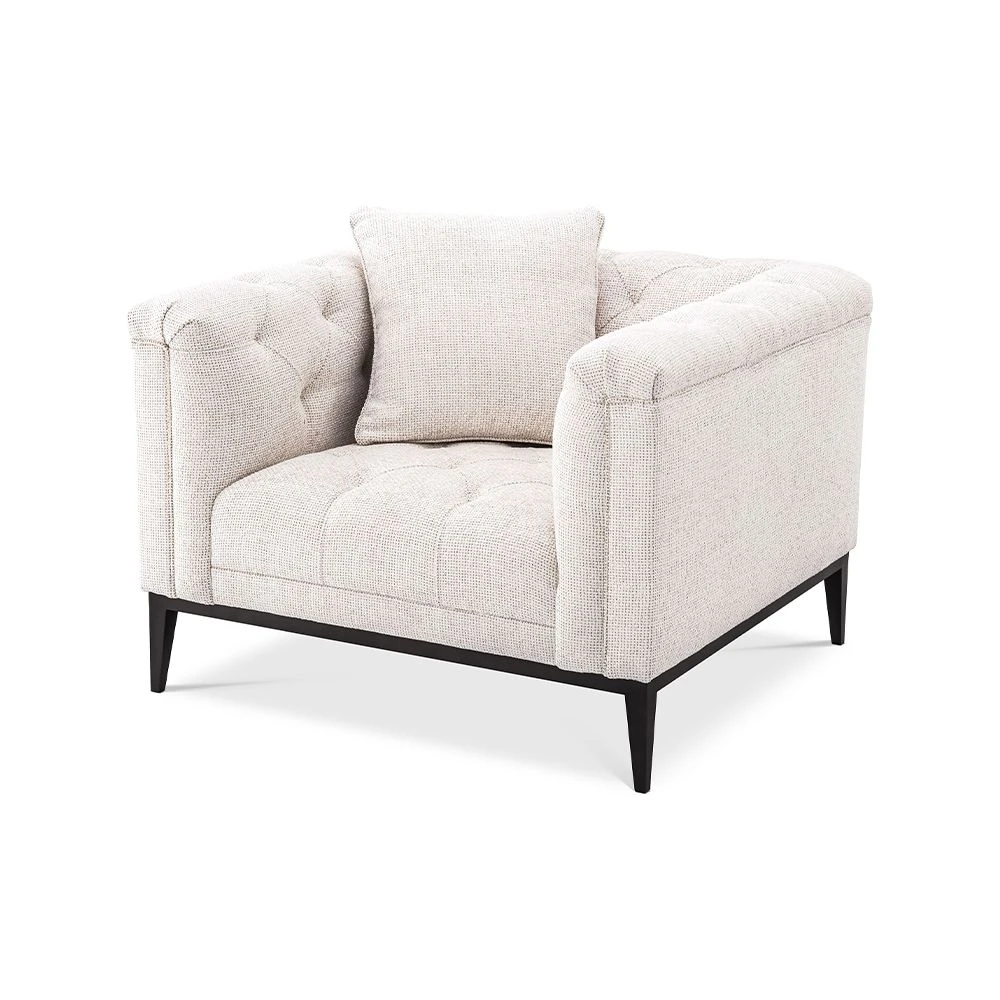 The classic, Cesare Chair by Eichholtz is a timeless piece with a contemporary design that will instantly bring a a touch of sophisticated elegance to your living room or bedroom décor. This stylish, square shaped armchair features a Lyssa off-white upholstery which is adorned with deep buttoned stitching and elevated on a black gunmetal base creating a monochrome contrast.