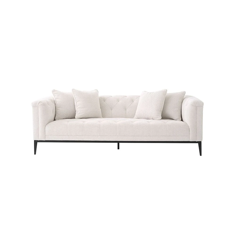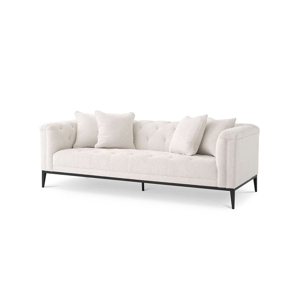 The chic, Cesare Sofa by Eichholtz combines classic and contemporary designs with it’s subtle and gentle curves which are adorned by deep buttoning and embroidered stitching. Inspired by Chesterfield furniture, this sumptuous sofa features a luxurious Lyssa off-white upholstery and is finished with a black gunmetal base, creating a beautiful monochrome contrast. Compete with four soft scatter cushions, this piece will bring effortless elegance and comfort to any home.