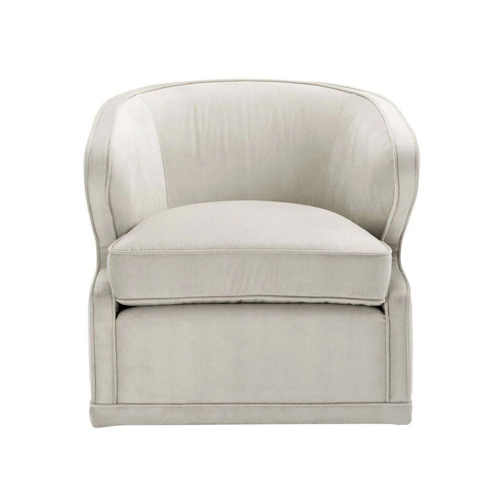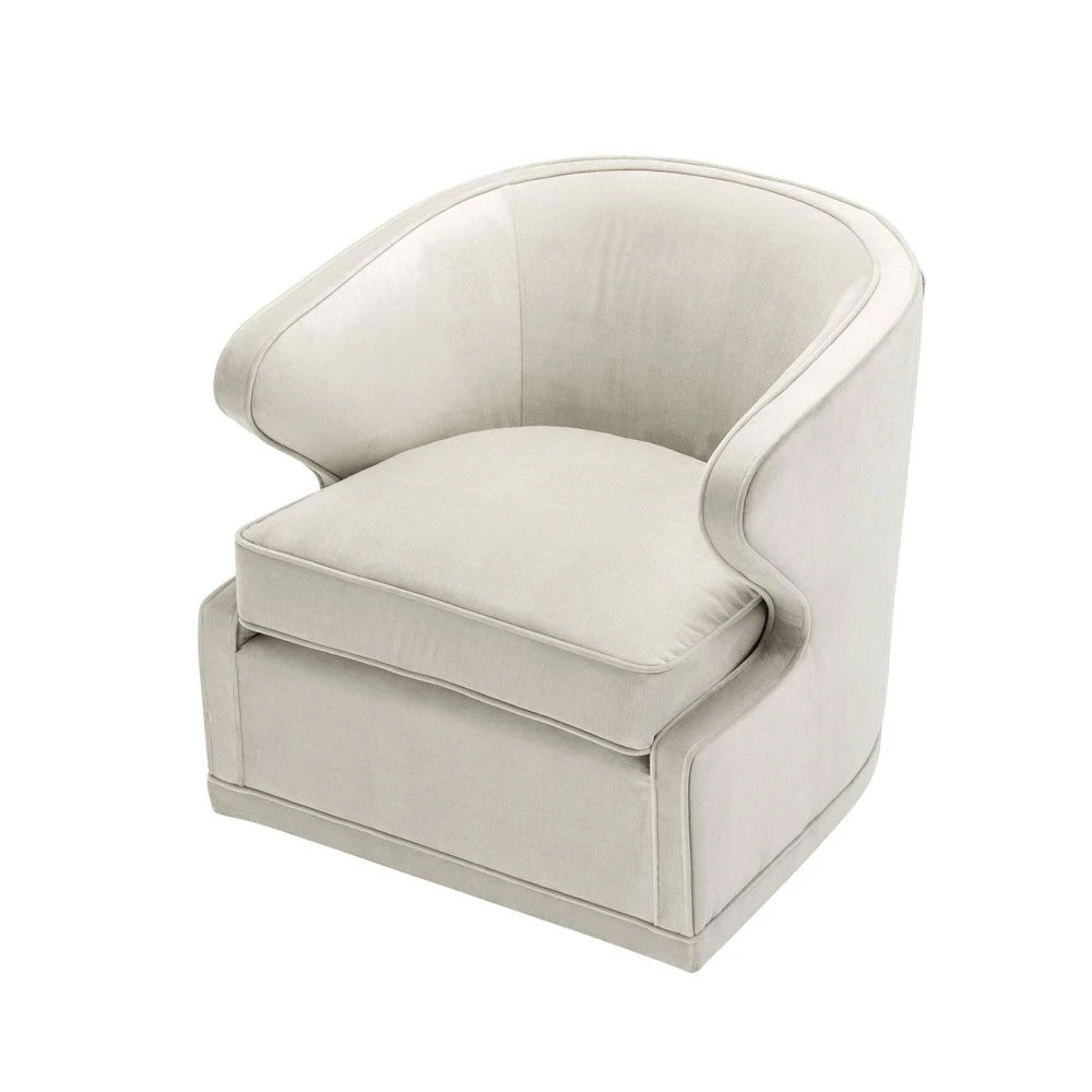 Add a sense of retro glamour to your living space. This stunning seat inspired by mid-century modern designs, this chair has a swivel base and defining piping. It makes a fabulous accent armchair for your living room or bedroom.