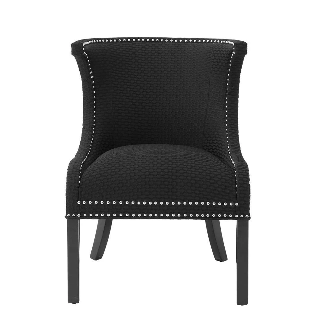 The swooping curves of the Elson Chair from Eichholtz give it superb comfort and a sleek profile. Upholstered in a stunning textured fabric and finished expertly with silver studding.