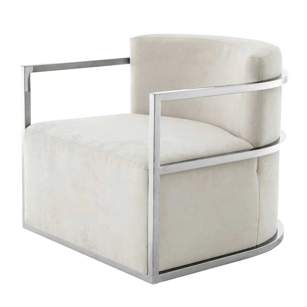 Modern, chic and slightly sci-fi; the Emilio Chair from Eichholtz is a gorgeous specimen that is sure to complete any modern interior. It has a sculptural quality thanks to the polished stainless steel frame which wraps around the upholstered seat, and the neutral velvet provides the cosiness factor.