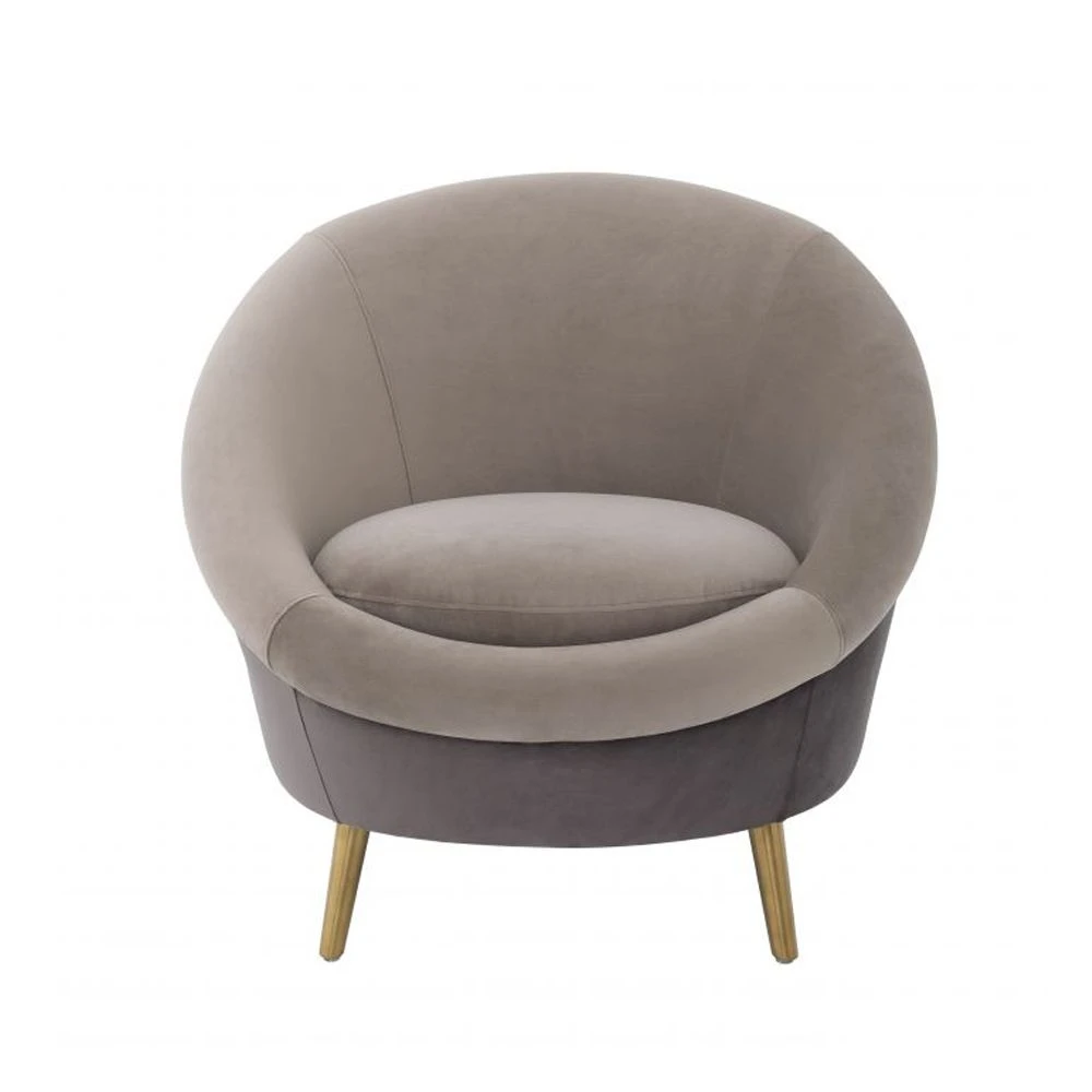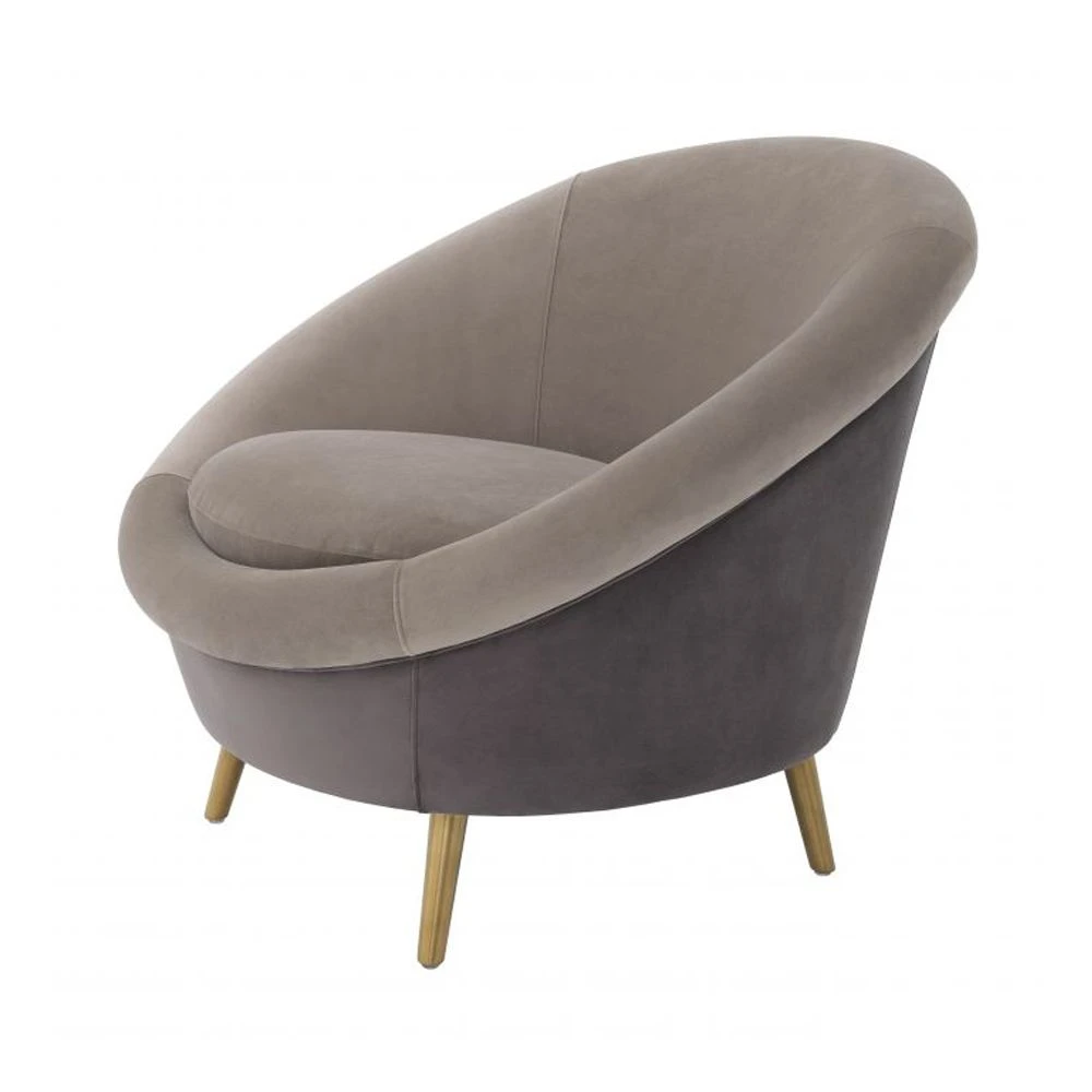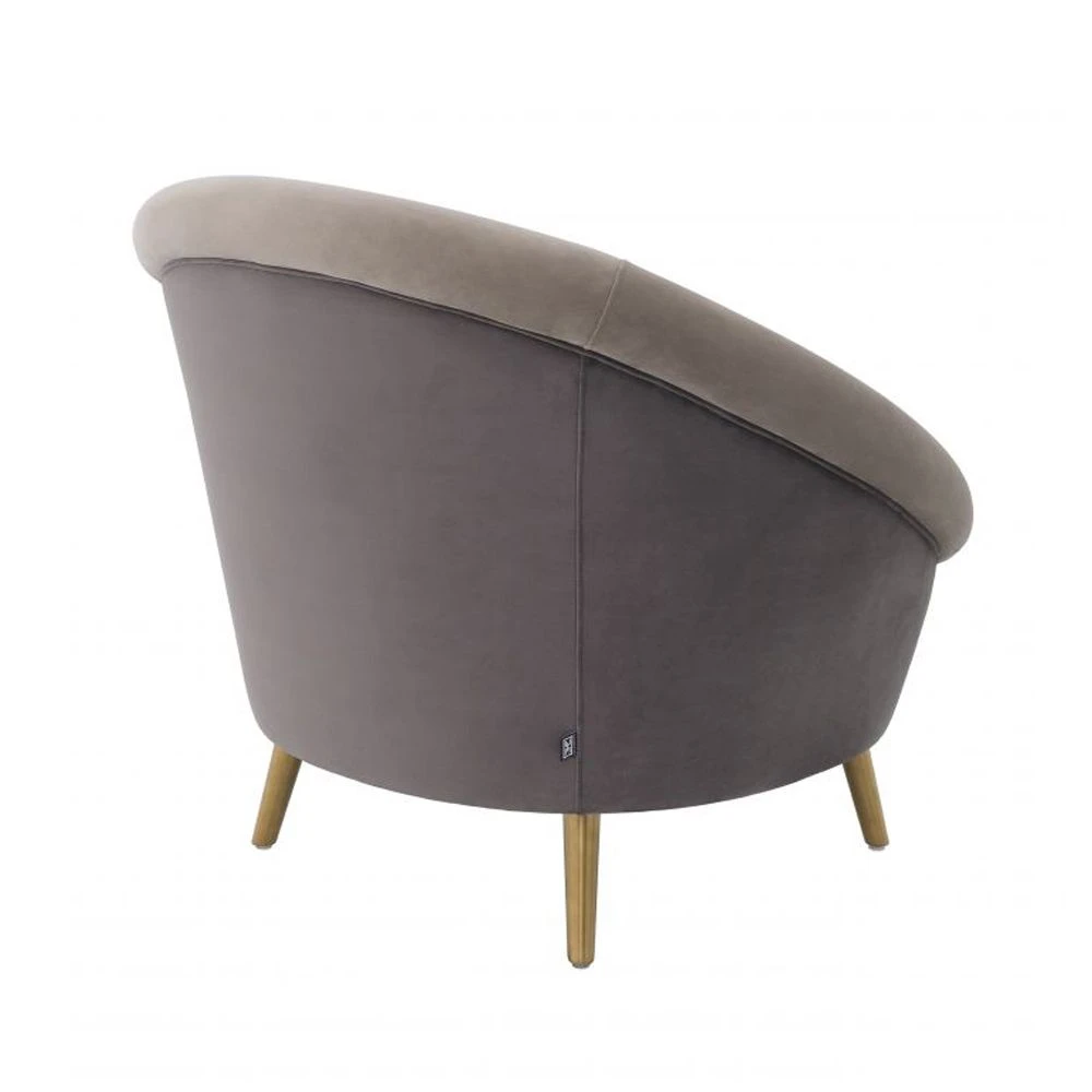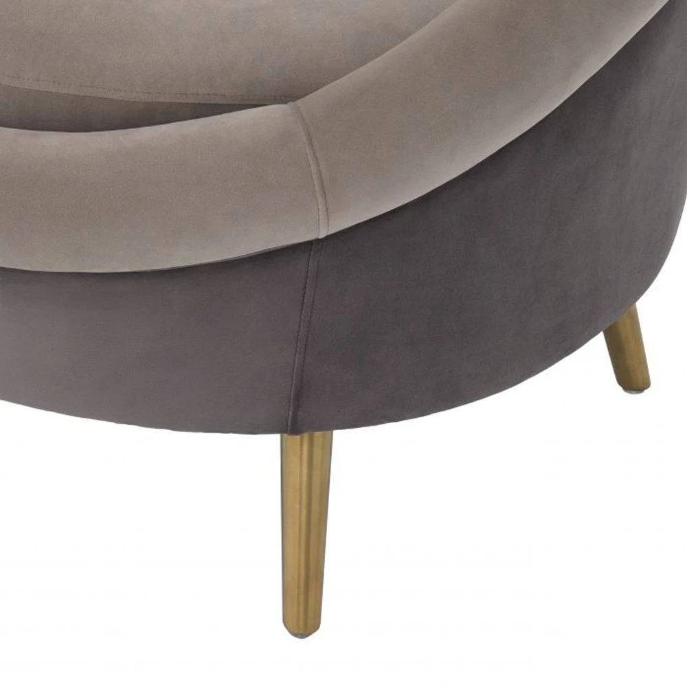 Inspired by retro designs, the stylish Giulia Chair by Eichholtz is a fabulous accent seat for adding interest and a comfy element to your living space. This intriguing design features both grey and greige velvet upholstery and is elevated on brushed brass legs.