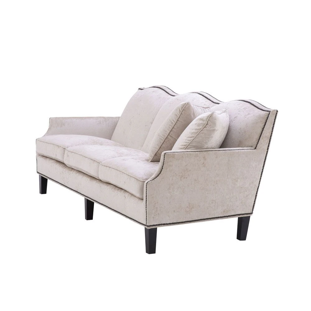 Complete your dream living room with this mesmerising, classic sofa by Eichholtz. This gorgeous velvety, off-white sofa comes with stunning tapered legs and elegant accents of antique bronze.