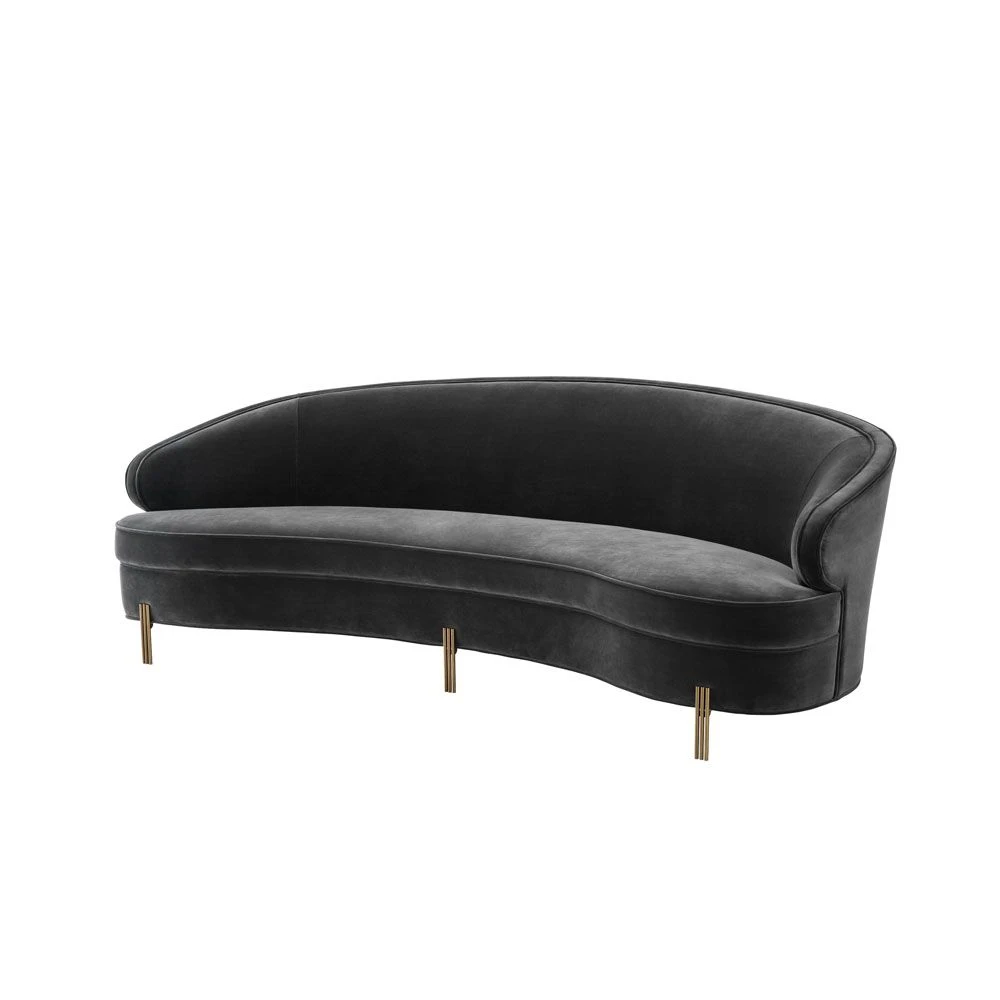 The fabulous Pierson Sofa features a stylish curved backrest and adds a touch of retro style to your interior space. Its clean lines and soft curves are reminiscent of Mid-Century Modern design, while its Savona dark grey velvet upholstery and gold-finished legs add a timeless touch.