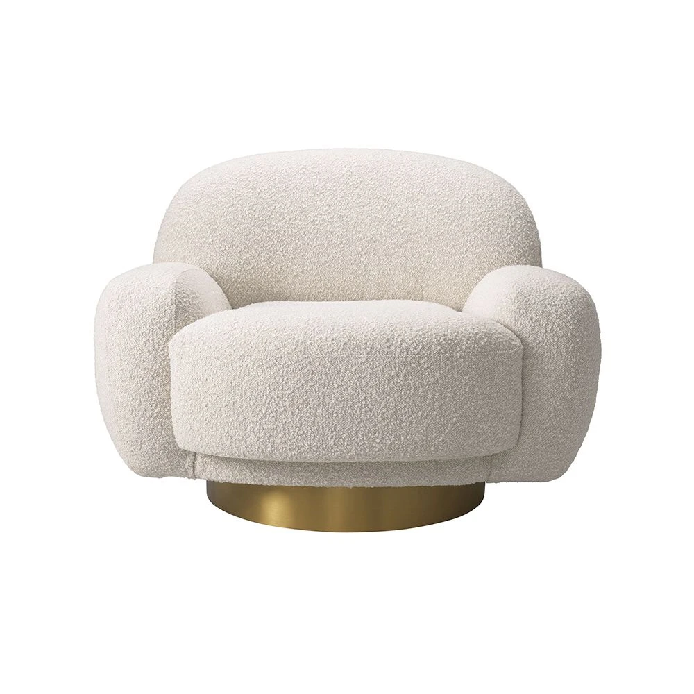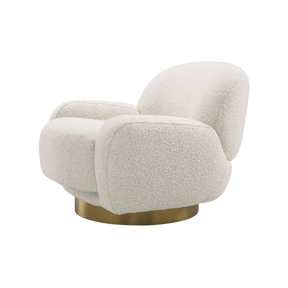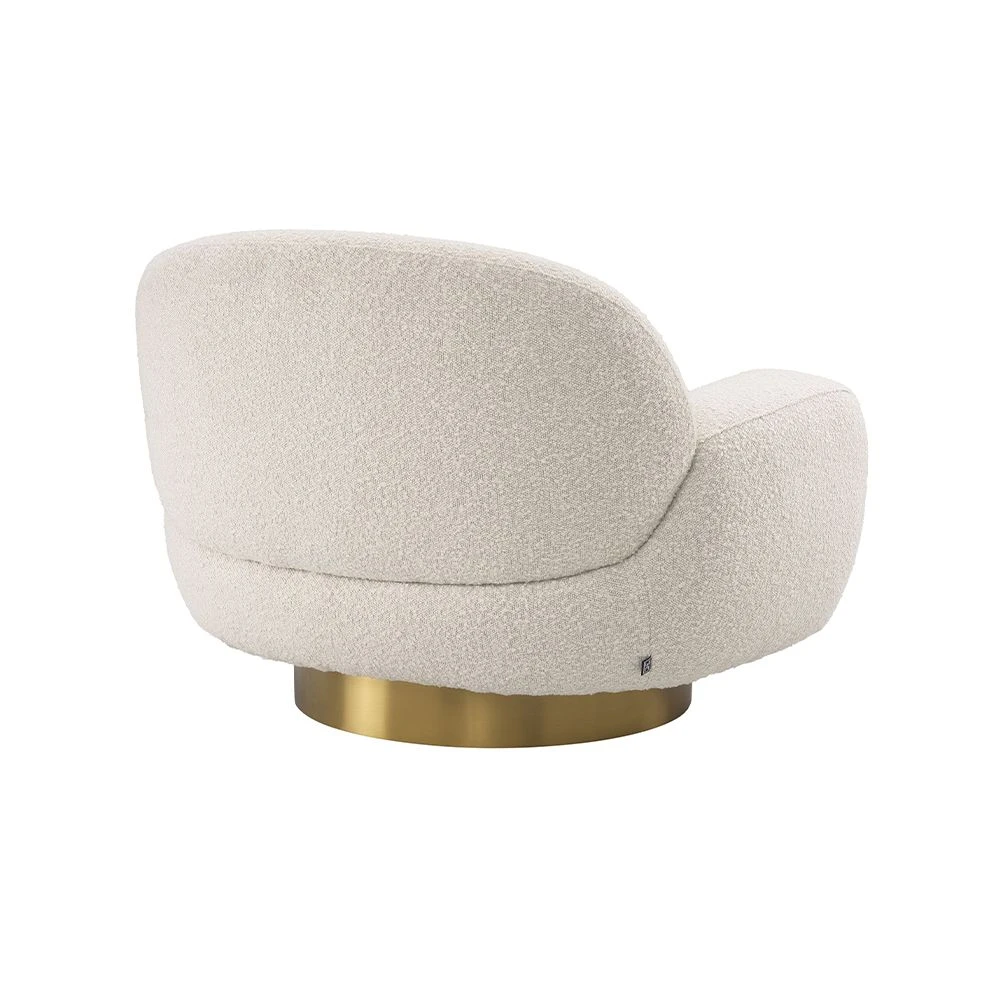 Incorporate a fabulous flow of movement into your living space with the curvaceous and aesthetically pleasing Udine Swivel Chair by Eichholtz. This sumptuous swivel chair boasts a beautiful Bouclé cream upholstery and a stunning, soft organic shape with a glamorous brushed brass finish swivel base. This contemporary chair embodies luxury and comfort with it’s opulent design so you can sit back and relax in style.