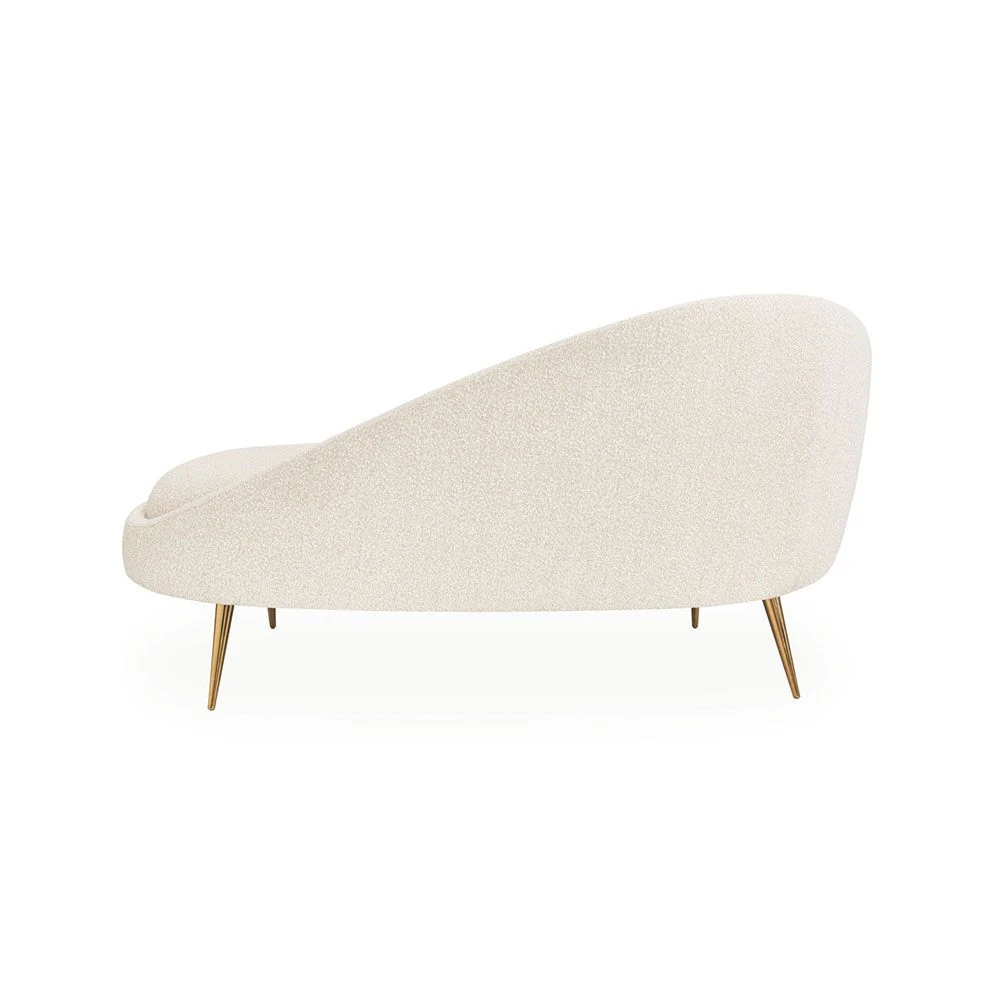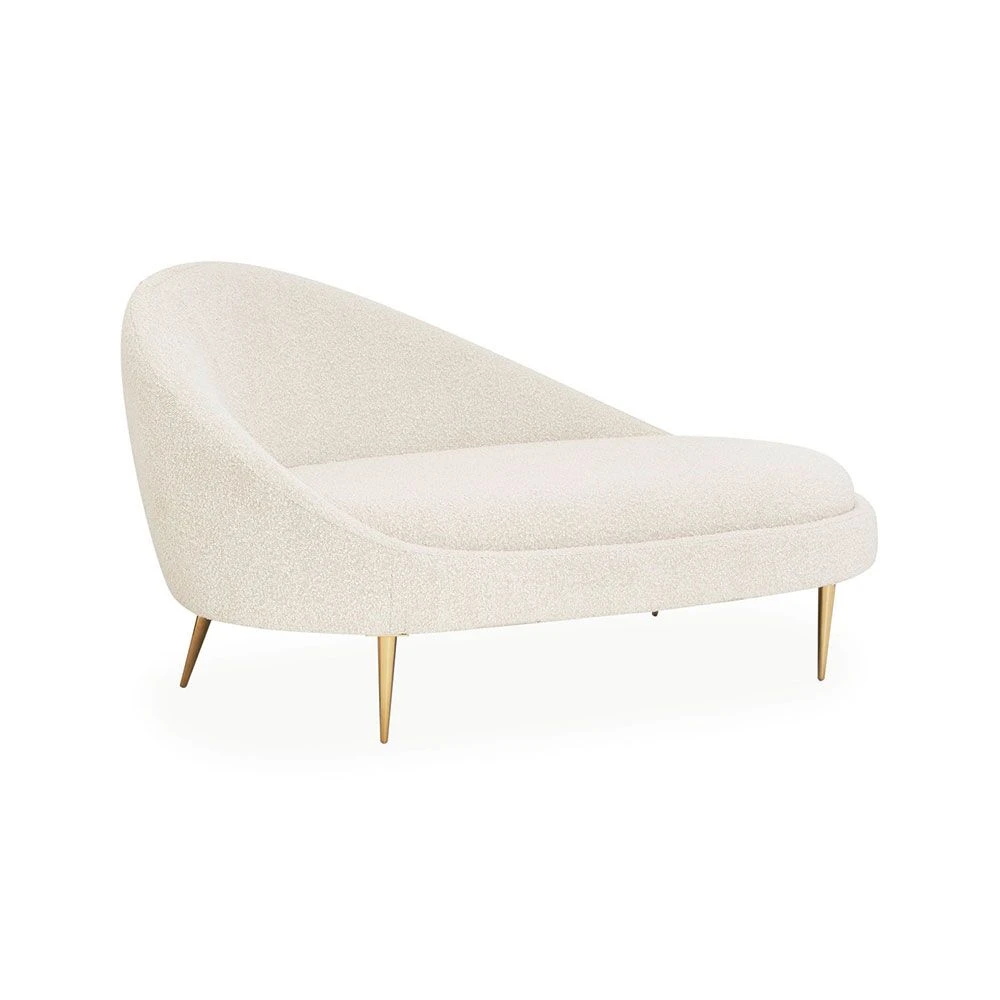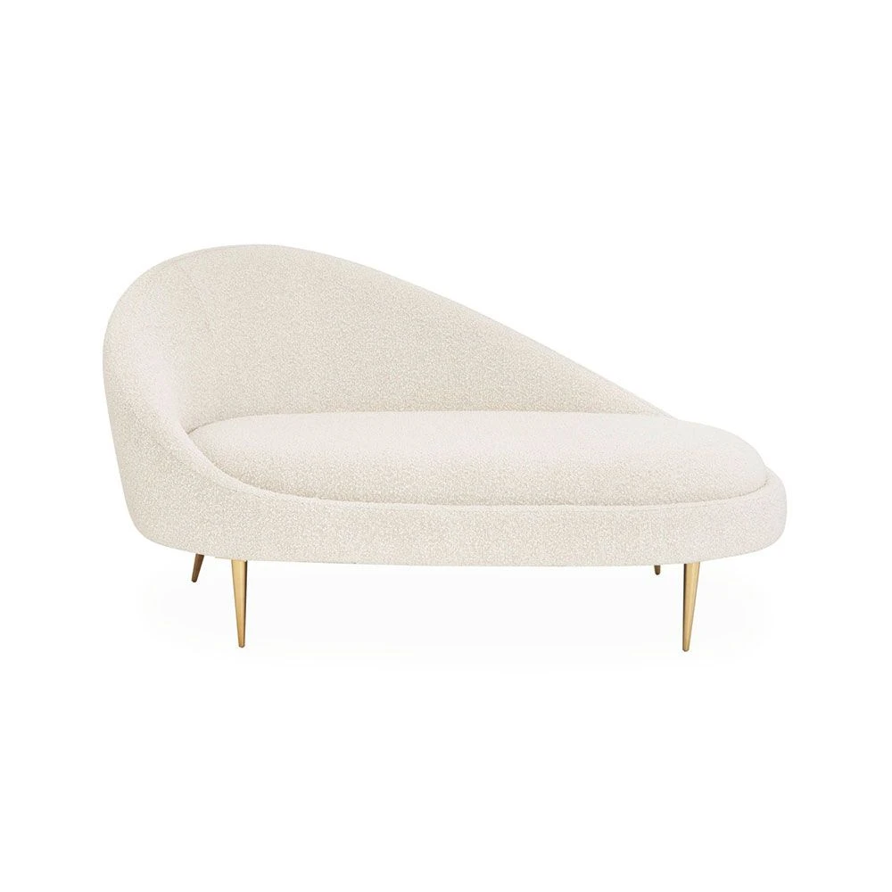 Lounge in style on this heavenly Ether Chaise by Jonathan Adler. This piece is a striking and dreamy addition to any home decor looking to splurge on comfort and luxury. The added touch of the brass stiletto legs just elevates the inviting appeal of this alluring chaise.