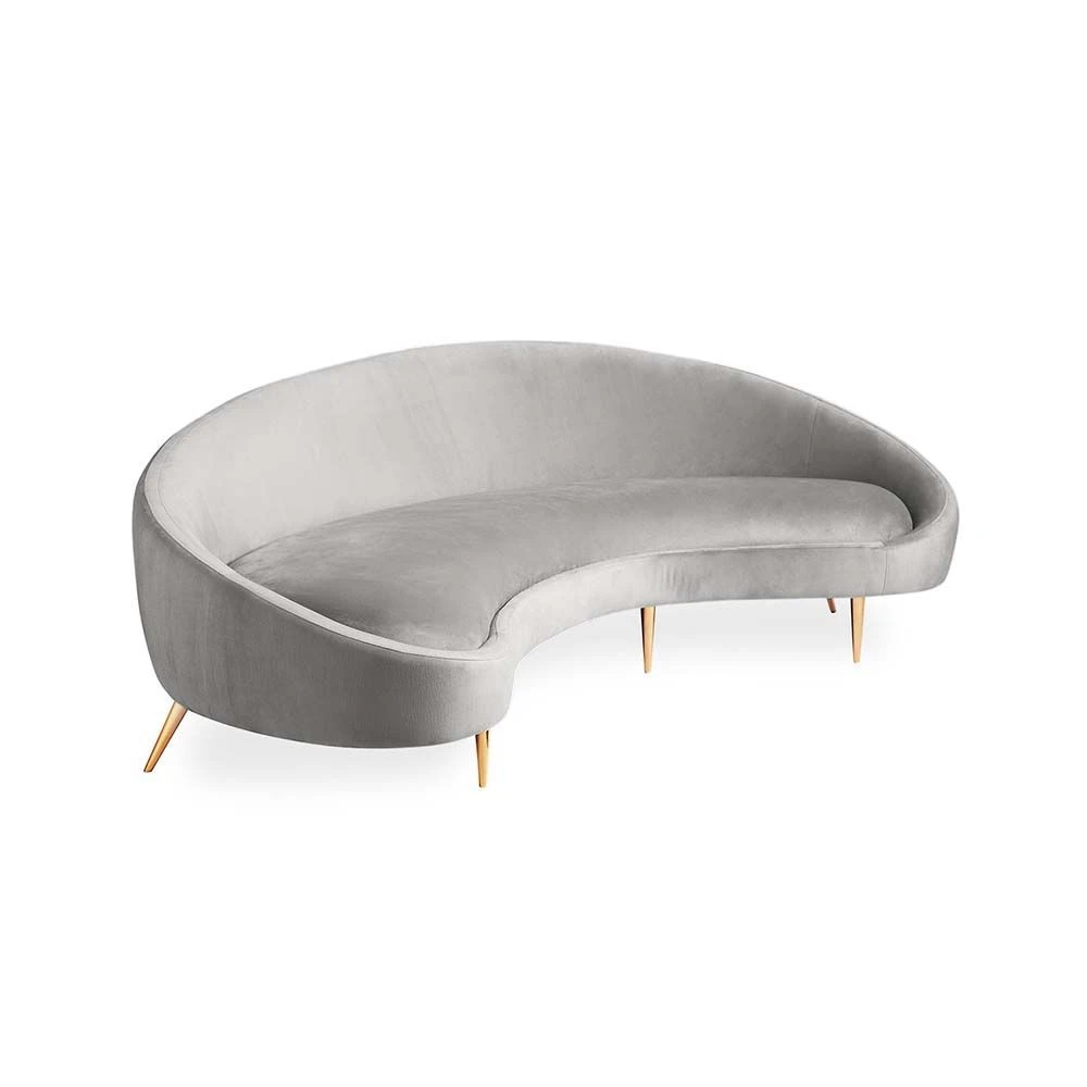 Be as comfortable as can be with this charmingly comfortable Ether Curved Sofa. Upholstered in an elegant Bergamo Graphite velvet, its organic design makes it an effortless anchor for your living space. So let it make a statement or let it own the corner you’ve left behind. Finished with some graceful brushed brass legs, it’s ready for you to enjoy some rest and relaxation.