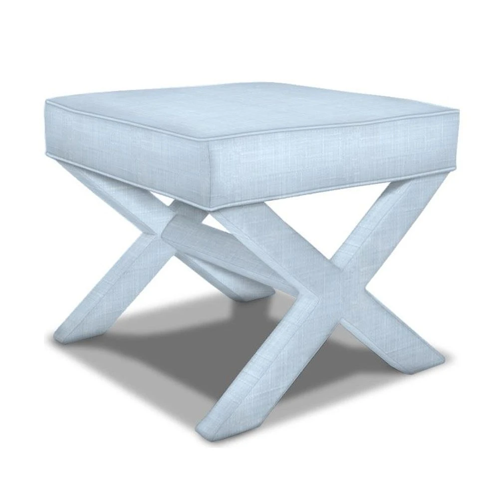 Handcrafted by artisans, this luxurious bench is a glamorous finish touch for injecting effortless chic and sophistication into any space. The classic design and cool, Nottingham Ice upholstery will complement any home.