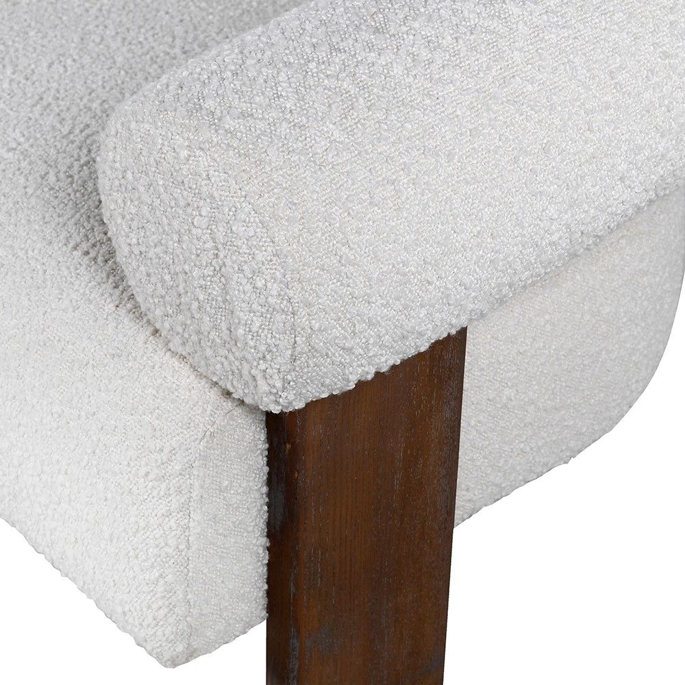 The Lexington Armchair is a perfect blend of comfort and style. Its soft cream boucle fabric and elegant curved design create a cosy and inviting look that complements any living space. This chair is crafted with sturdy materials, ensuring long-lasting durability. Its sleek and modern design makes it a statement piece that enhances the overall look of your home.