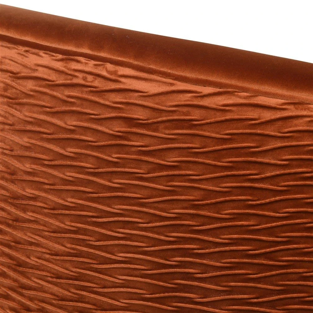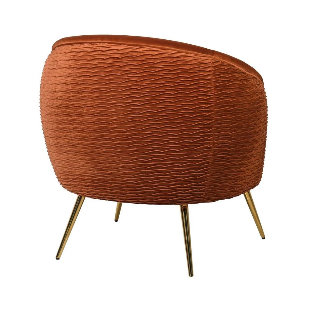 Incorporate some mid-century chic into your interior theme with this fabulous rust gold-coloured armchair. The perfect accent chair for any living space, this sumptuous seat is supported by golden, tapered legs and has elaborate detailing around the back.